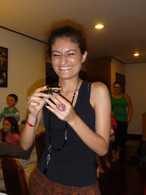 | Alina eating her sushi with her fingers - the "unsophisticated way to do it" according to Zhen |